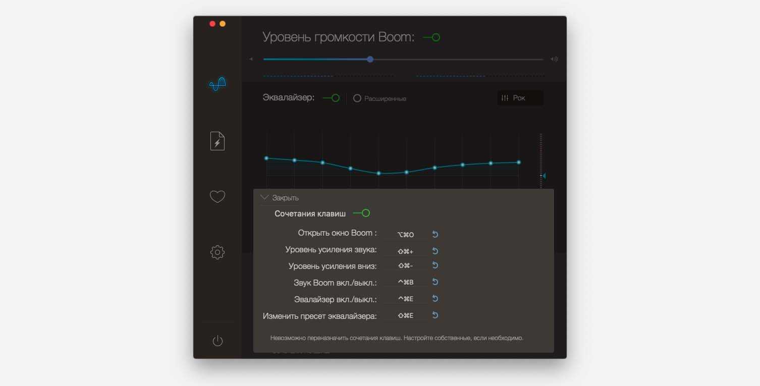 Обратите внимание, что в приложении имеются горячие клавиши для быстрого изменения параметров программы. Скачать Boom2 в App Store – 1 150 руб