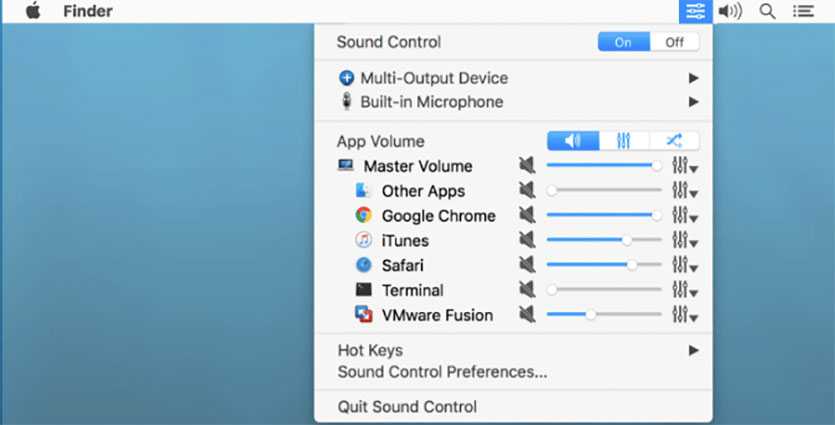 Третий неприятный момент, который связан с выводом звука на Mac – это отсутствие регулировки громкости для каждой программы.