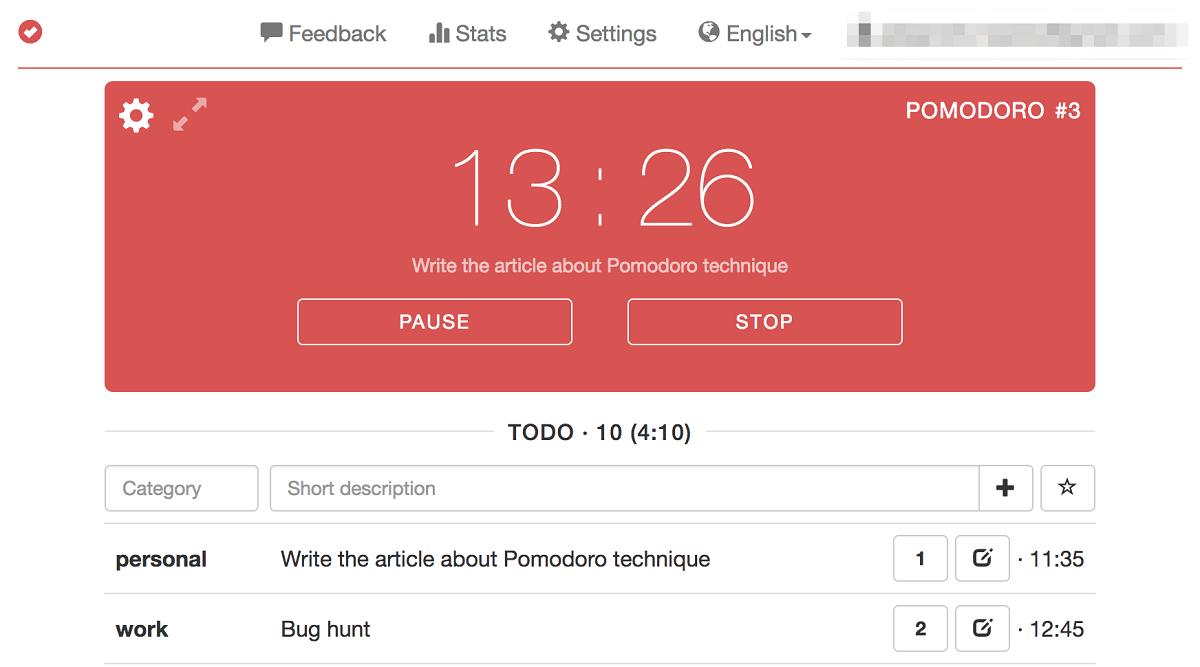Классический и минималистичный Pomodoro-таймер, с которым удобно делить задачи на время и не отвлекаться на другие вопросы. Есть настройка временных блоков, языков и другие нюансы, а в стандартном трекере автоматом выставлено 25 минут.