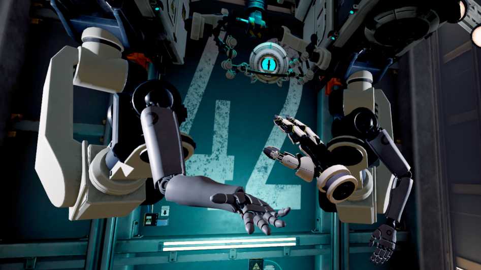 Демо Aperture Hand Lab мгновенно поразило меня в плане отслеживания пальцев: сначала простые жесты вроде взмаха приветствия самоуверенному роботу, потом игра в камень-ножницы-бумагу и соревнование по неловким рукопожатиям. Я не задумывался о кнопках – всё сводилось к взаимодействию рук и пальцев с игровым пространством.