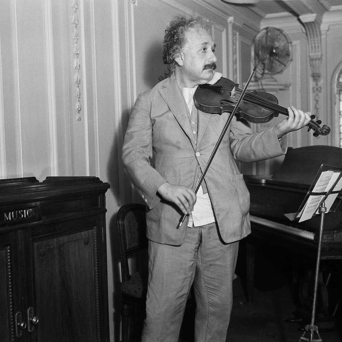 «Музыка помогала ему обдумывать его теории, — рассказывала вторая жена Эйнштейна, Эльза, — Он выходил из кабинета, брал несколько аккордов на пианино, сидел в задумчивости, что-то записывал и возвращался обратно в кабинет».