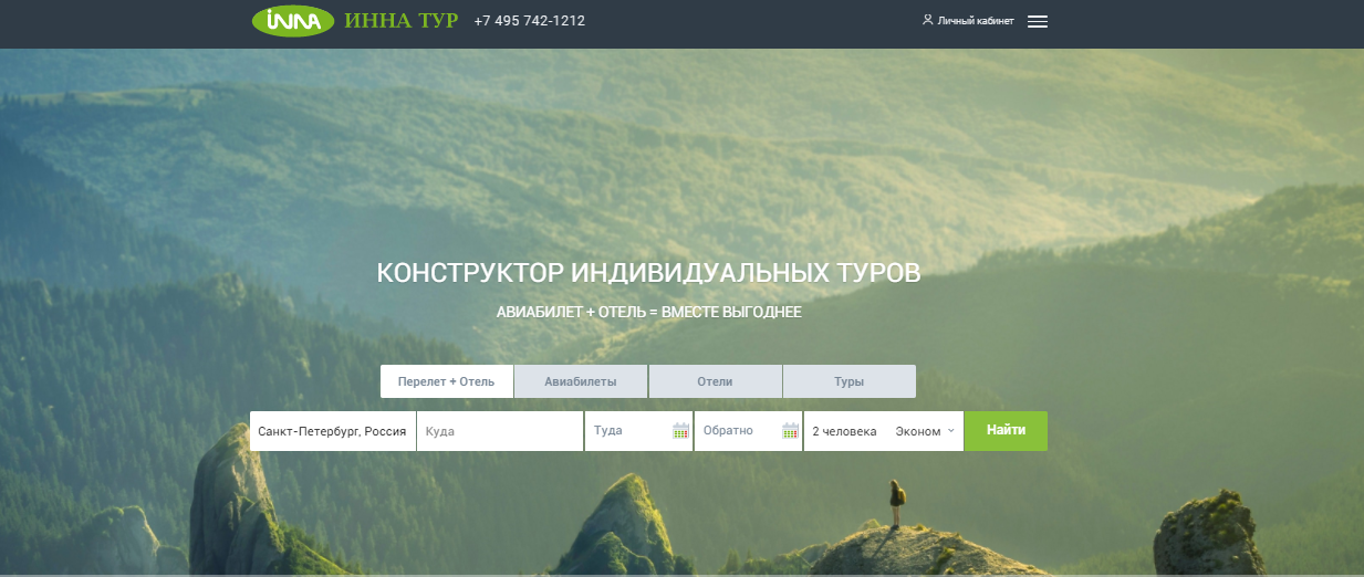 Компания – лидер российского туристического бизнеса, который, помимо экскурсионных туров, образования и лечения за рубежом, активного отдыха, свадебных, оздоровительных и прочих туров, предлагает решение динамического пакетирования, в основе которого лежит технология формирования и реализации турпродукта путем прямого обращения к ресурсным системам авиакомпаний, отелей и консолидаторов в режиме онлайн. Такой метод позволяет забронировать и оформить путешествие за несколько минут и на довольно выгодных условиях. Все это стало возможным благодаря BOOKINNA – платформе динамического пакетирования, выступающей альтернативой классического выбора туров.