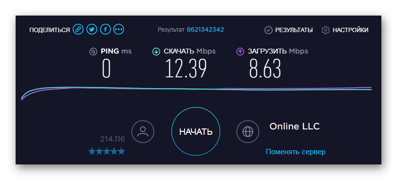 Проверка через сервис Speedtest выполняется следующим образом: