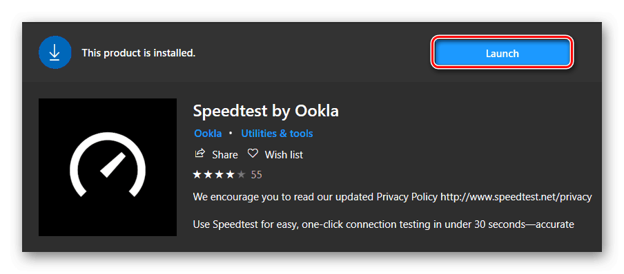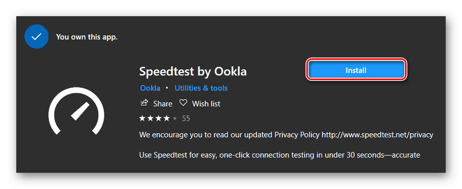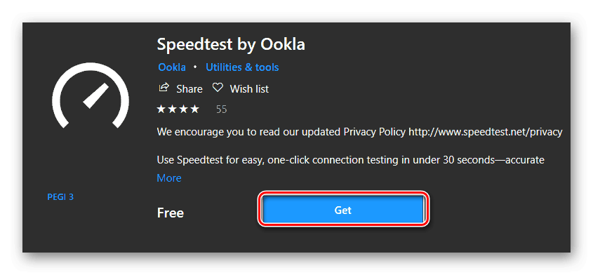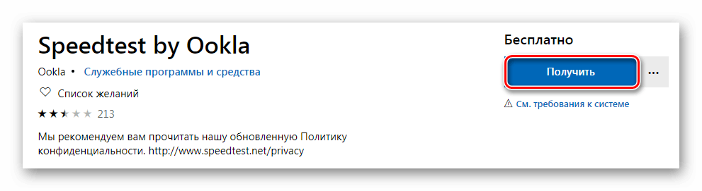 Веб-сервисы для тестирования скорости интернета могут быть использованы в любой версии Windows, так как для проверки понадобится только браузер. Для десятой версии Windows в качестве дополнения можно скачать специальную программу из магазина Microsoft. Чтобы это осуществить, выполним следующие операции:
