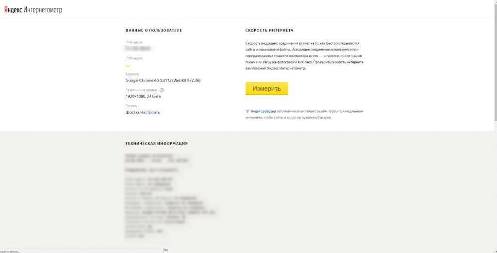 Сервис Яндекс.Интернетометр определяет скорость входящих и исходящих соединений без пинга. Однако в дополнение к этому он показывает подробную информацию о вашем интернет-соединении, операционной системе и браузере, в котором вы отметились. Обидно, что здесь не представлены бенчмарки и возможность сохранять результаты тестов.