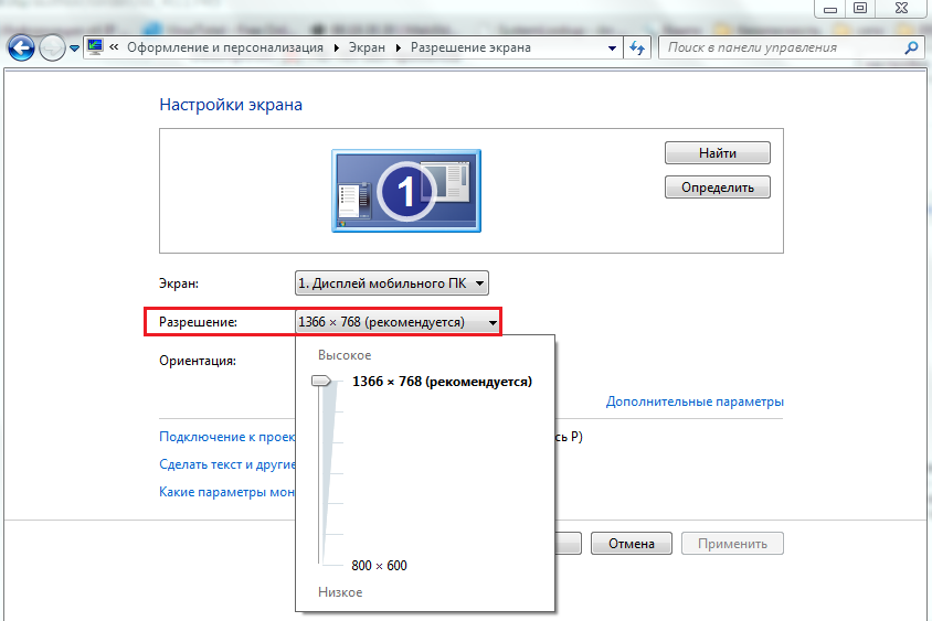 После установки видеодрайвера разрешение экрана автоматически устанавливается на оптимальное и для пользователя становится доступной его настройка. Установить одно из нескольких стандартных разрешений можно с помощью инструмента Windows 7 “Настройка разрешения экрана”.