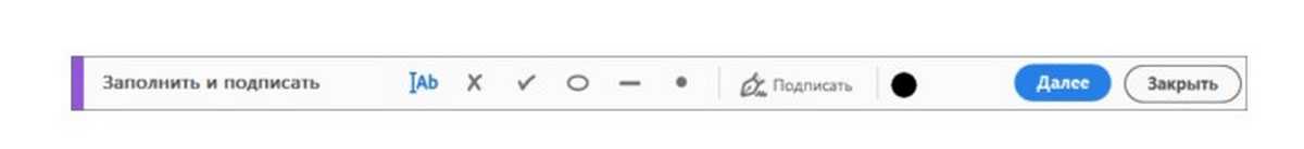 Если вы работаете с Adobe, вам нужно выбрать подраздел «Заполнить и Подписать», расположенный в настройках меню, кликнуть на кнопку «Далее».