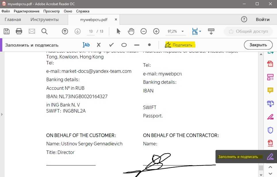 Как поставить подпись в электронном документе PDF
