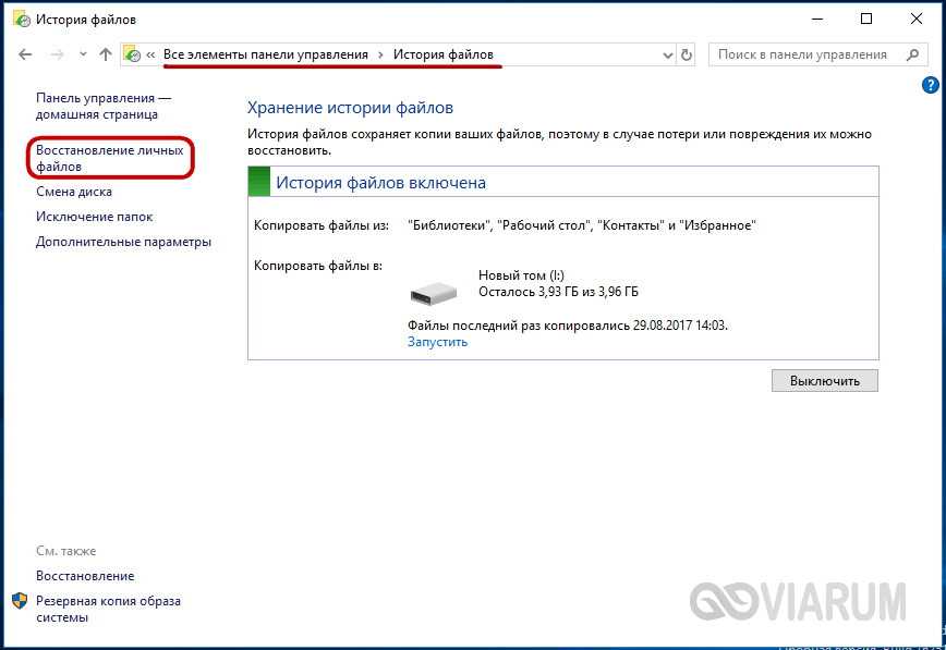 Весьма желательно, чтобы в системе также была задействована функция «История файлов», обеспечивающая периодическое резервное копирование содержимого пользовательских библиотек и рабочего стола.