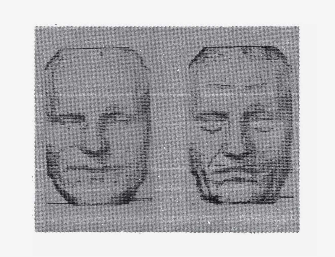 Автоматическое моделирование изменений мимики лица в работе скульптора с ЭВМ. 1977 год Из брошюры Виталия Файна «Человеко-машинный диалог в художественном творчестве».