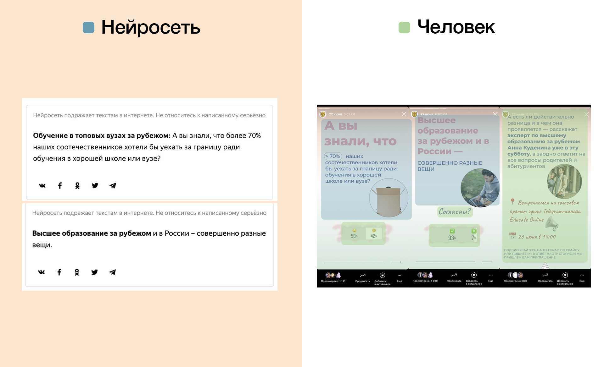 Гипотеза № 1. Нейросеть сможет самостоятельно писать более 50% текста для постов и сториз