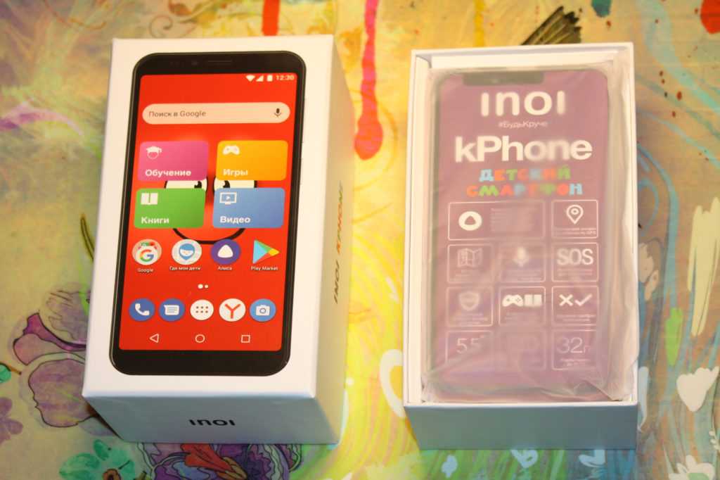 INOI kPhone упакован в небольшую коробку из плотного картона с яркими надписями по бокам «INOI kPhone». Коробка открывается довольно сложно (это вы сможете наблюдать в видео ниже).