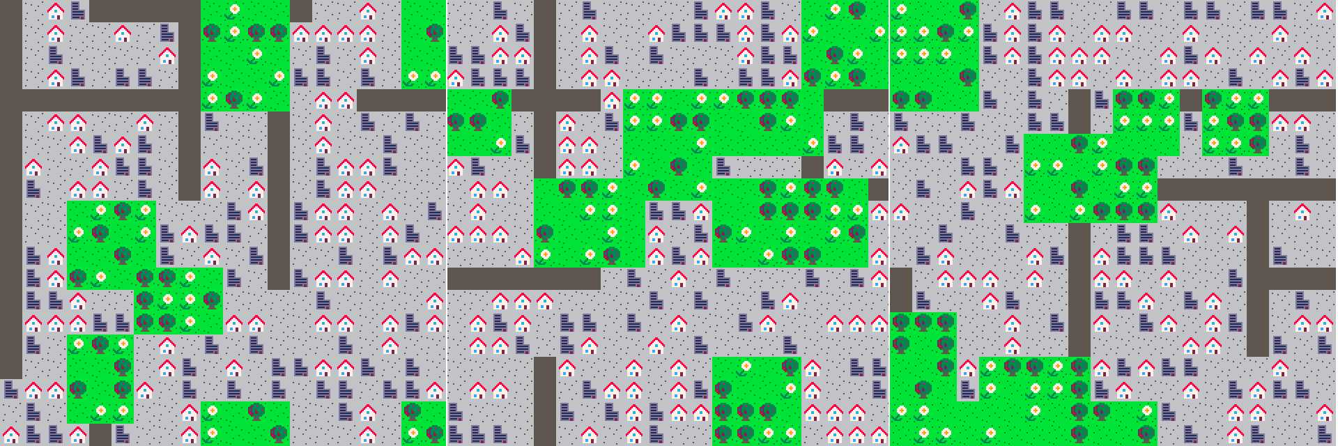 Как и в случае изометрического города, я рисую дороги и парки, а плитки выбираю из стандартного набора изображений. Сетка квадратная, не изометрическая, но принцип точно такой же.