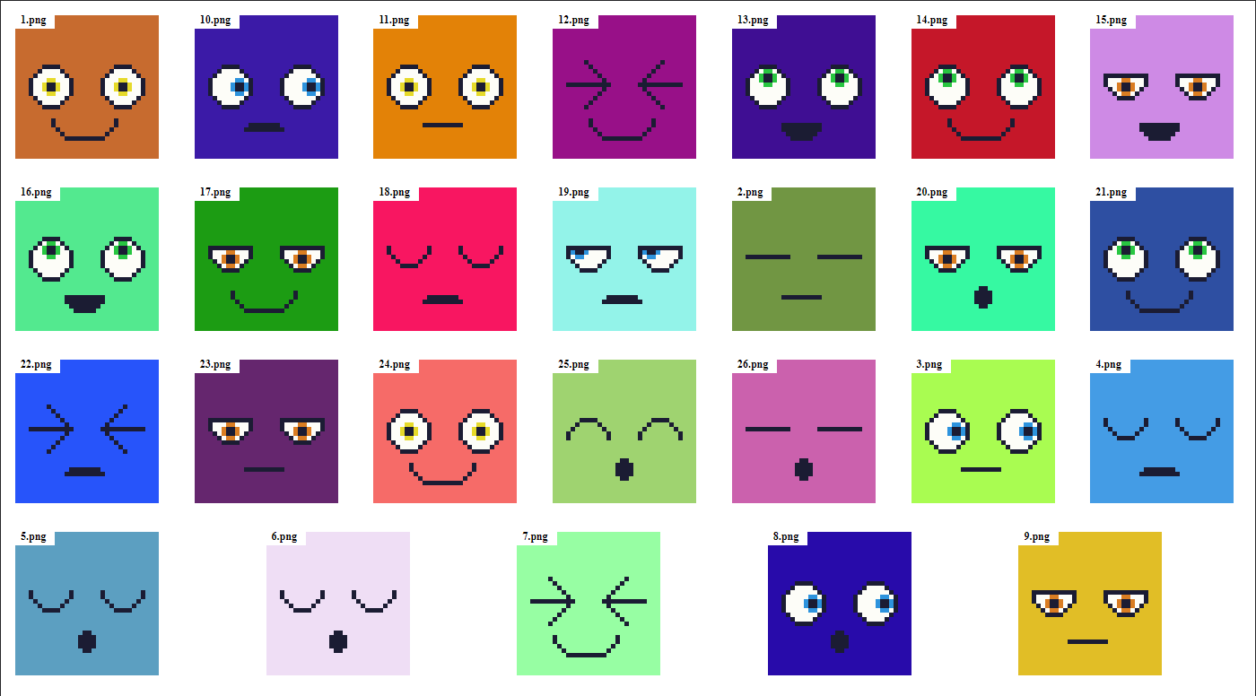 Мой путь генеративного искусства начинается с предварительно нарисованных объектов, которые я затем комбинирую в различных сочетаниях. Можно создавать элементы полностью с нуля с помощью PHP, но это меня не интересует, мне нравится иметь некоторый художественный контроль. Из-за влияния видеоигр я создал всё в виде пиксель-арта.