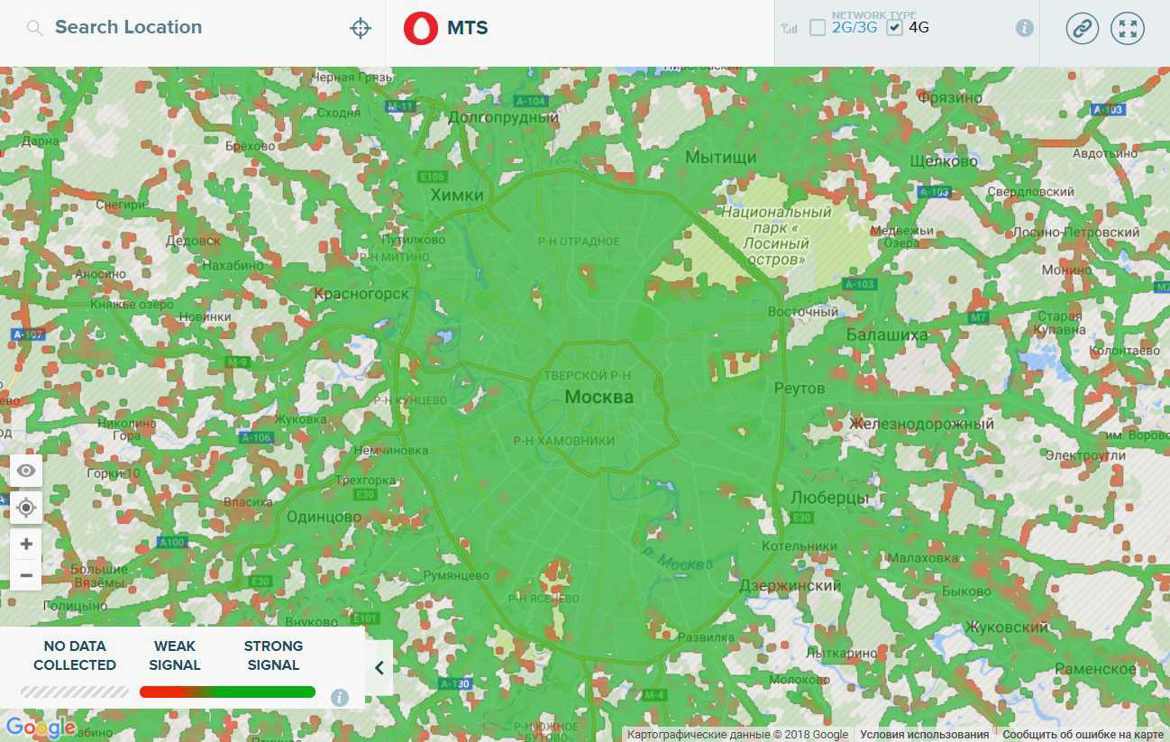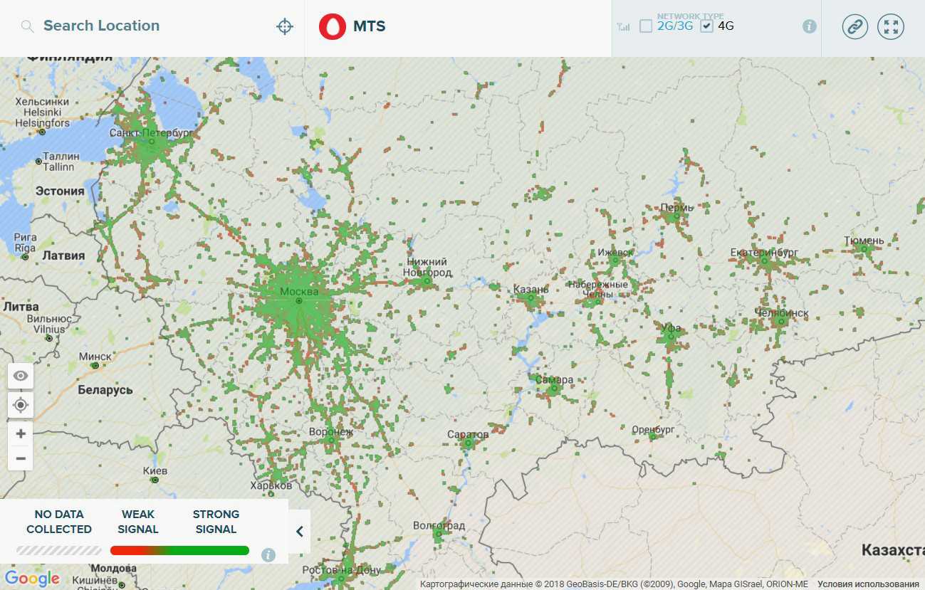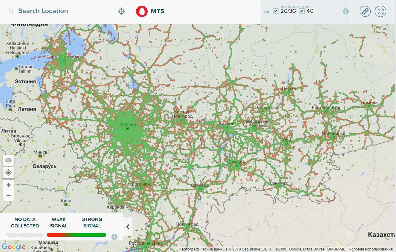 И о покрытии в РФ. Вот карта для МТС. Данных по России гораздо меньше. Но понятно, что в Москве всё хорошо и со связью в целом: