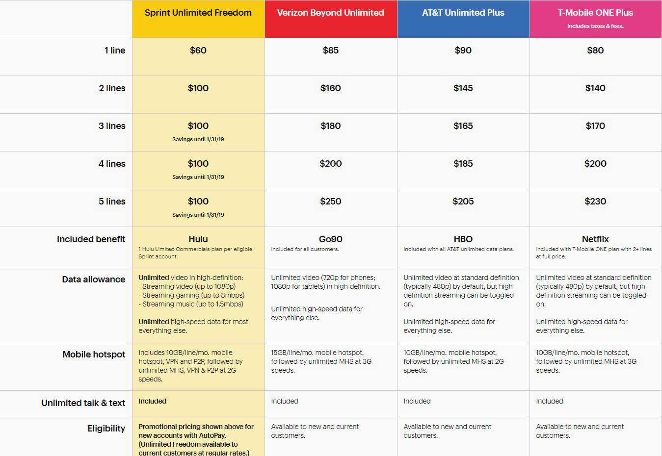 Безлимитные тарифные планы Sprint тоже не радуют. Правда, если сравнивать свой обычный план с не самыми дешевыми тарифами конкурентов, выйдет дешевле: