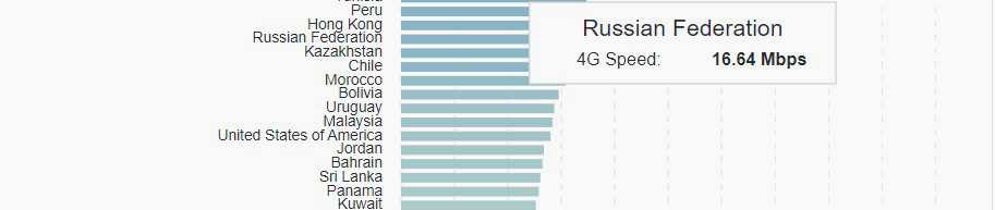 Россия, впрочем, на 72-м: с результатом 15,80 Мбит/с (скачивание) и 7,11 Мбит/с (загрузка) обошла Никарагуа, но уступила Гондурасу и Эквадору. Что ж, в прошлом году РФ была на 73-м месте.