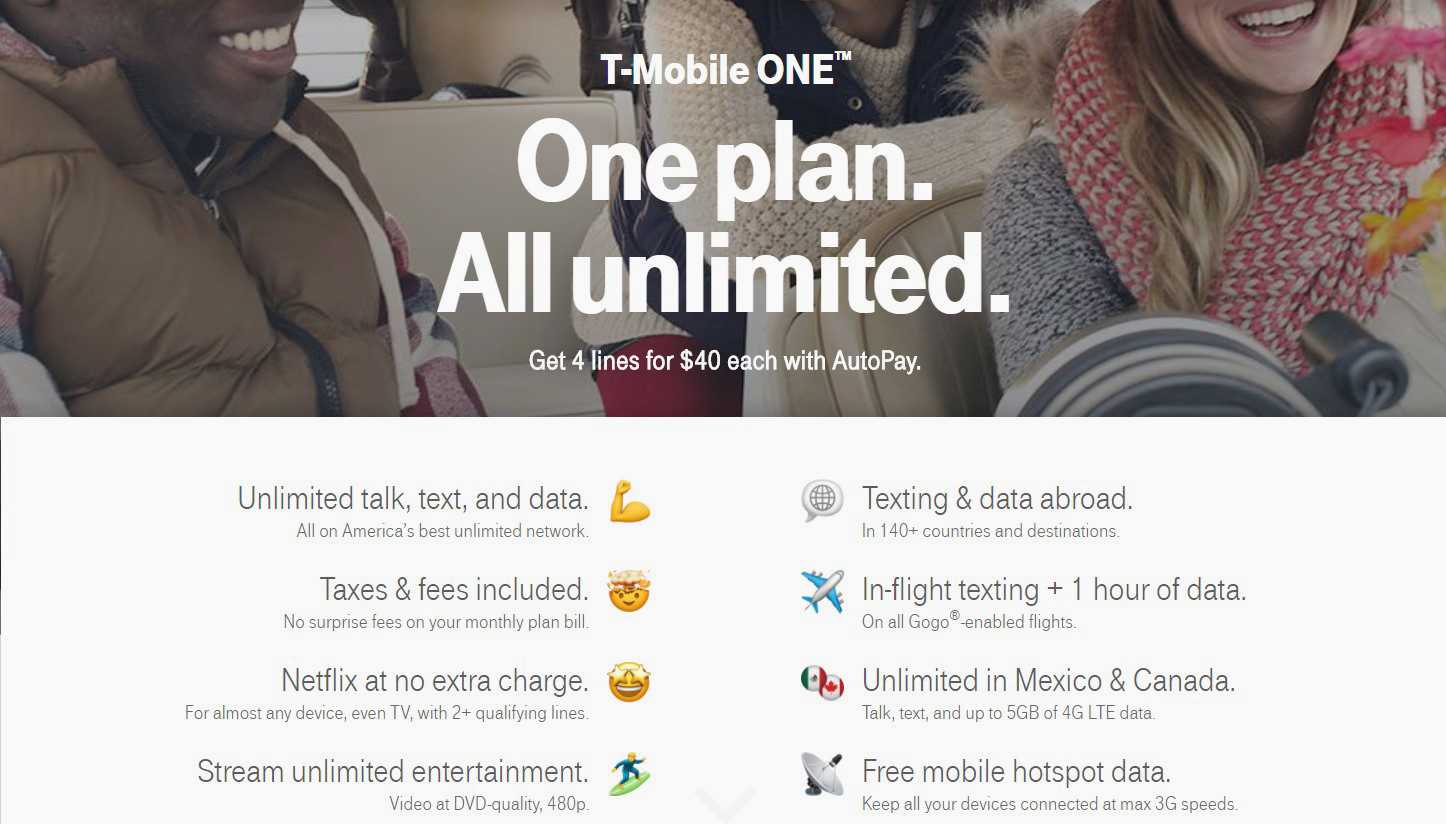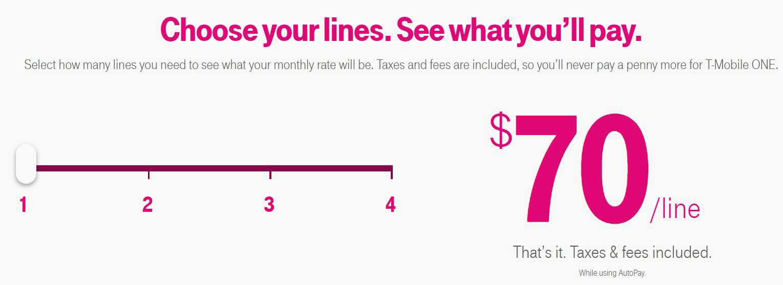 У T-Mobile тарифные планы с безлимитным интернетом стартуют от 40 долларов в месяц за 4 линии, но если вам нужна всего одна, придётся платить 70 долларов в месяц. И тоже только если вы включите автоплатёж.