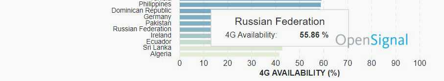 Вот ещё один интересный отчёт Open Signal за ноябрь посвящён доступности 4G в разных странах.