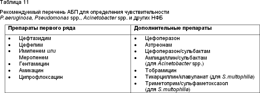Дополнительные препараты по уровню природной активности, как правило, уступают антибиотикам первого ряда, однако, во многих случаях, прежде всего по экономическим соображениям, могут быть использованы в терапии. Кроме этого, необходимо учитывать, что неферментирующие бактерии существенно различаются по уровню природной чувствительности к АБП.