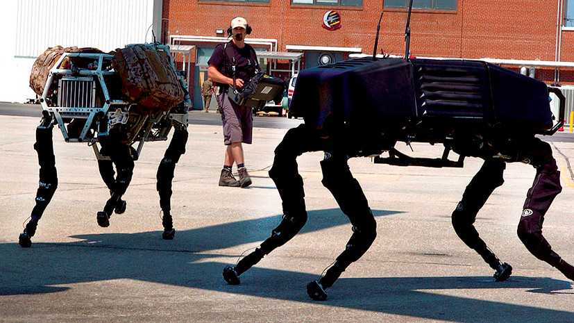Однако реальное развитие военной робототехники не пошло по такому пути. На протяжении около 15 лет поставить робота на ноги (причём на четыре ноги, а не две) пытается американская компания Boston Dynamics. В 2005 году она представила своего первого шагающего робота BigDog, который должен выполнять функцию транспорта для сухопутных войск.