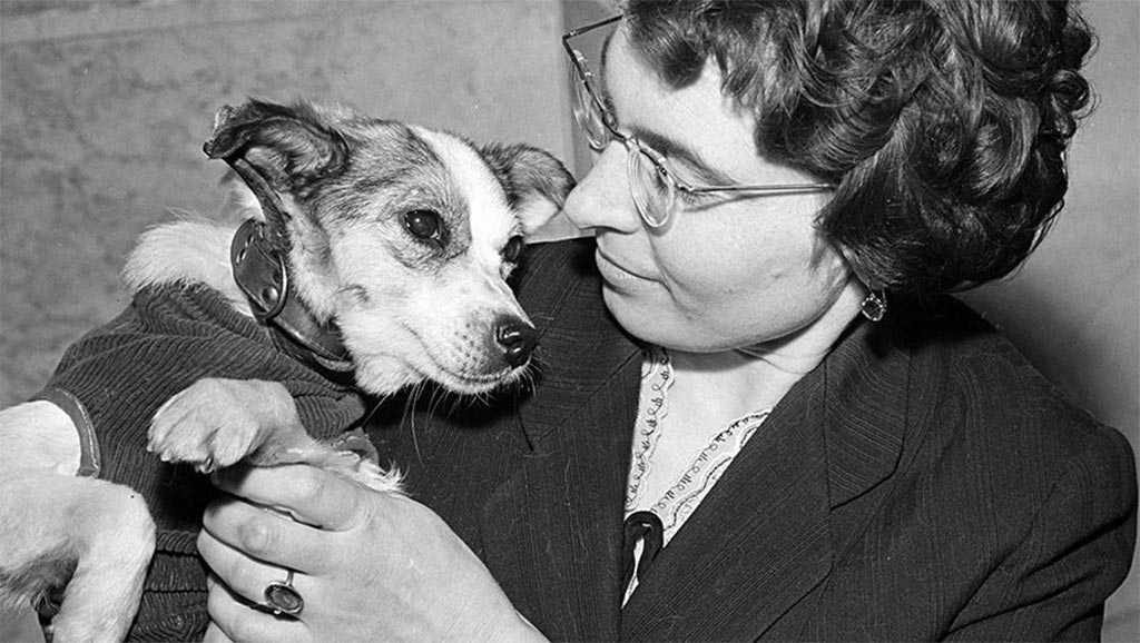 3 ноября 1957 года второй в истории космический корабль вывел на орбиту первое животное, собаку Лайку , запущенное на борту советского космического корабля Спутник-2 (на Западе прозванного «Муттник»). Лайка погибла во время полета, как и предполагалось, потому что технология возврата с орбиты еще не была разработана. По меньшей мере 10 других собак были запущены на орбиту и множество других в суборбитальных полетах до исторической даты 12 апреля 1961 года, когда Юрий Гагарин стал первым человеком, побывавшим в космосе.