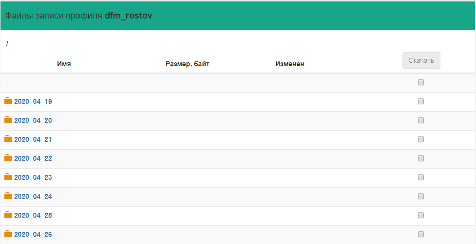 Сразу после перехода на страницу в списке отображаются папки, содержащие записанные аудиофайлы. Название каждой папки — это дата записи (год, месяц, день).