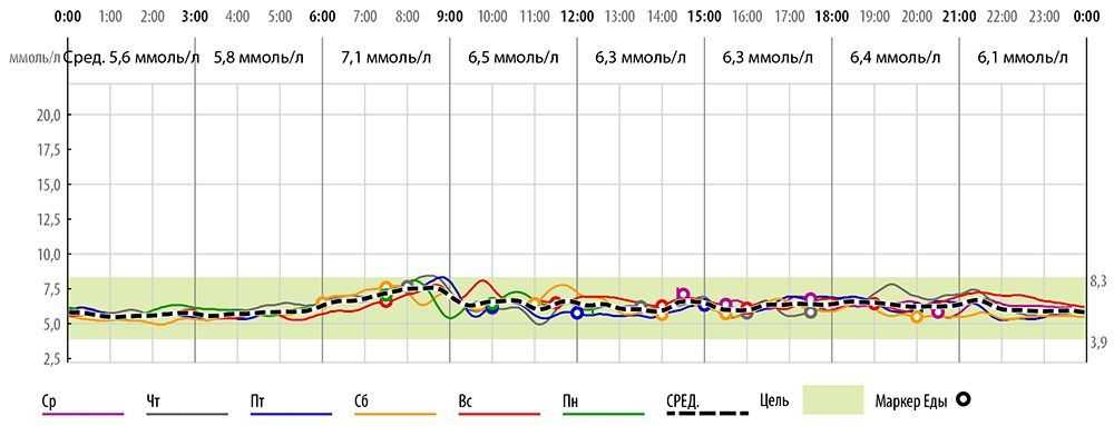 Повторное мониторирование гликемии после коррекции терапии позволяет объективно оценить эффективность изменений (рис.7).