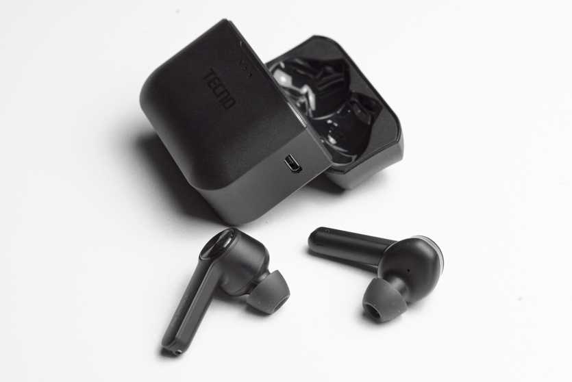 У нас на обзоре оказались TECNO Hipods H1. Это полностью беспроводные наушники в кейсе размерами чуть больше, чем AirPods Pro.