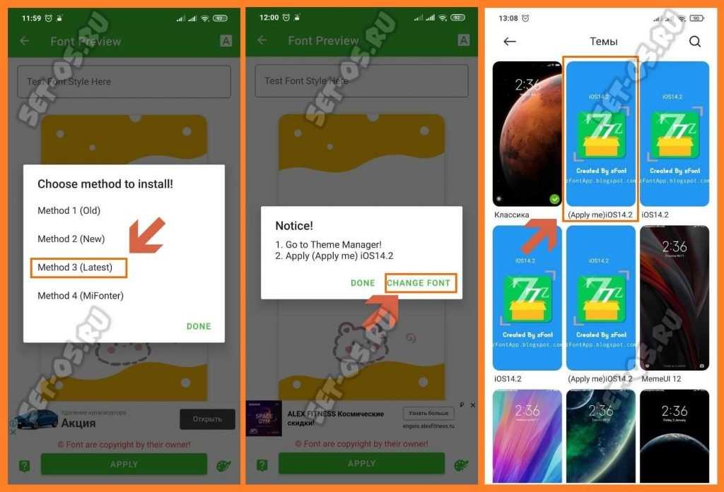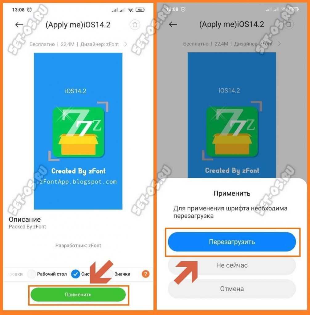 - Среди списка должна быть новая тема от приложения zFont — IOS с версией, которую вы выбрали в предыдущем разделе. Её нужно активировать;