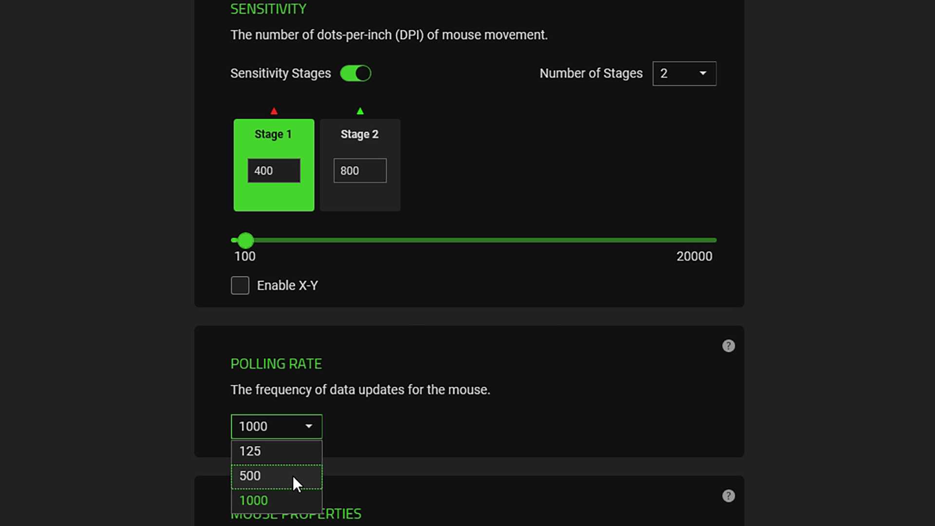 Частота опроса измеряет, сколько раз ваша мышь передает данные на ваш компьютер в секунду. Таким образом, чем выше частота опроса, тем быстрее игра фиксирует положение вашей мыши. Большинство современных мышей имеют предопределенные значения частоты опроса на выбор между 125, 500 и 1000 Гц. Как правило, различить 500 и 1000 Гц практически невозможно. Как в большинстве случаев бессмысленное соотношение контрастности 10 000: 1 на мониторах, не поддавайтесь гипнозу большим числом. Многие профессиональные игроки FPS без проблем играют на частоте 500 Гц.