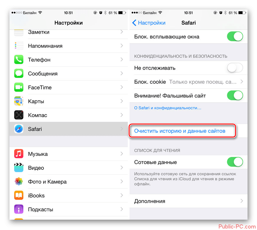 Способ для iOS 7 или более ранней версии для удаления или очистки истории Safari и файлов cookie