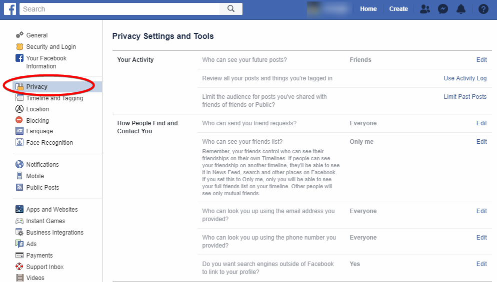 - Как с вами можно связаться на Facebook. Вторая половина настроек конфиденциальности позволяет выбрать, кто может отправлять вам запросы на добавление в друзья, просматривать список друзей или найти ваш профиль по электронной почте/номеру телефона. Самое главное, вы можете решить, будет ли у внешних поисковых систем ссылка на ваш профиль на Facebook или нет.