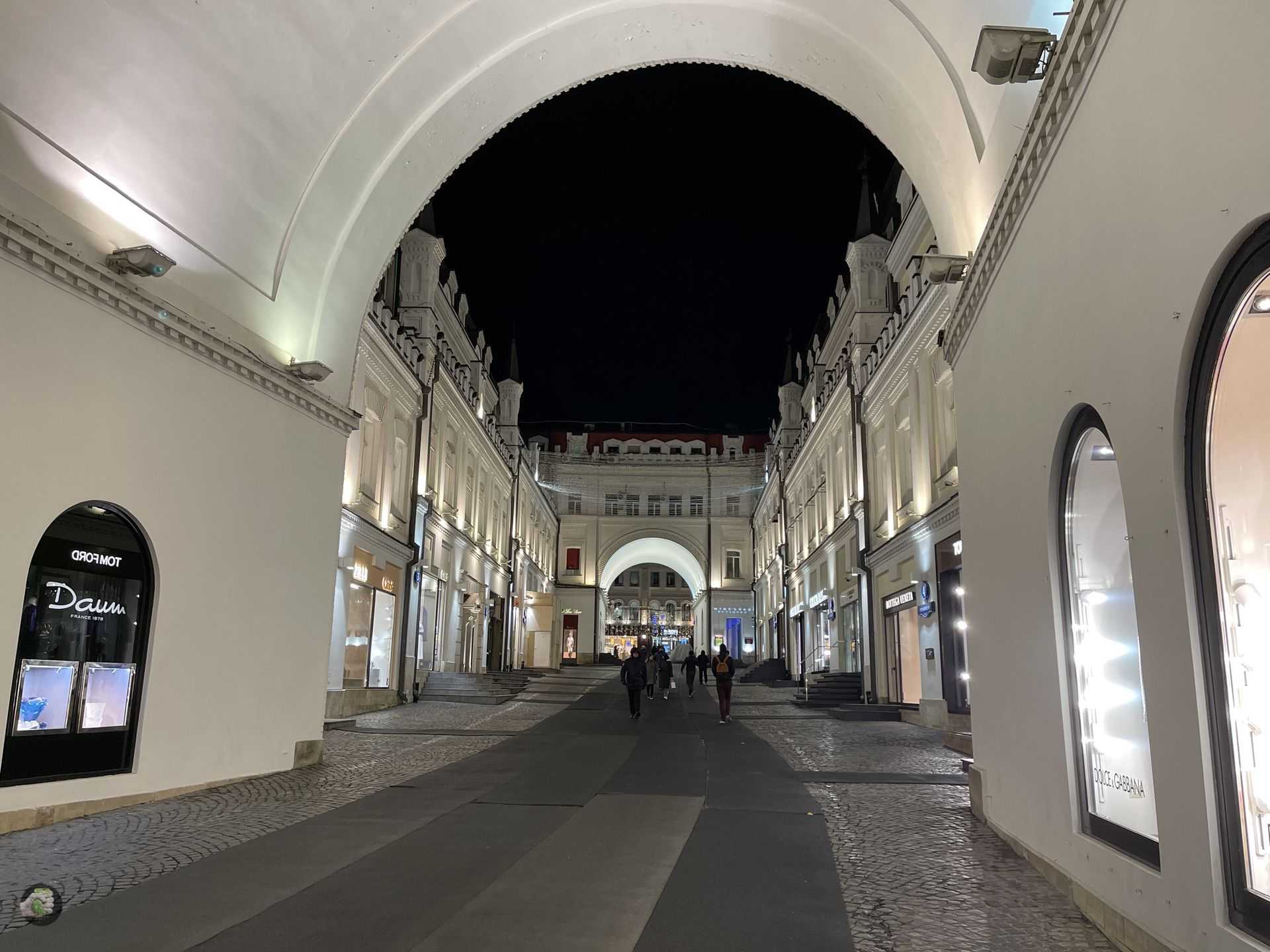 Примерно 22:00. Повторюсь, камера ночью ведёт себя подозрительно, алгоритмы наверняка будут править много-много раз. Но вот здесь ГУМ как положено!