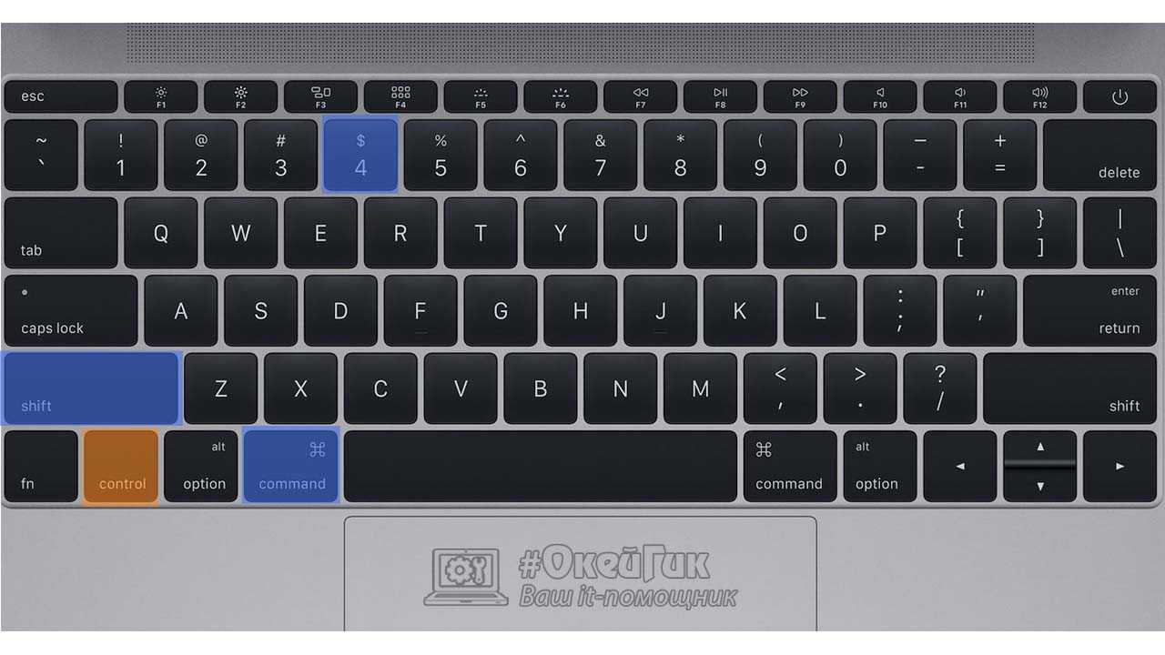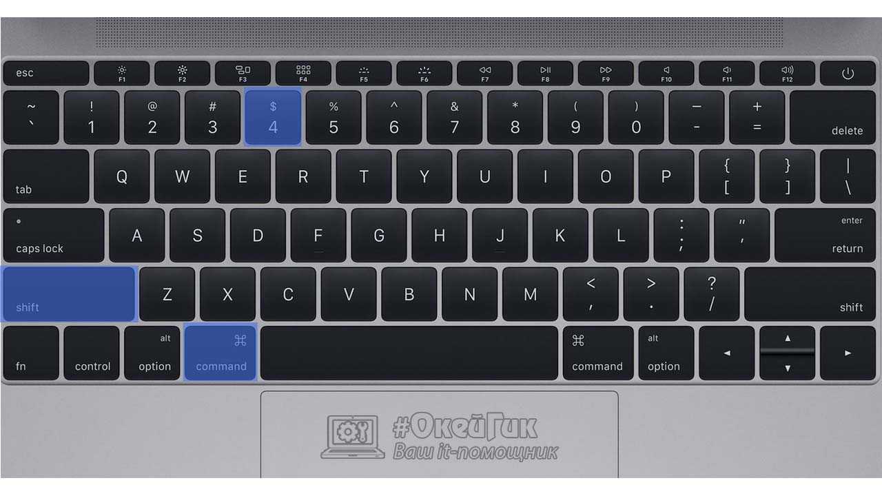 Еще один простой способ создать снимок экрана на ноутбуке от Apple. Идеален в тех случаях, когда нужно сделать скрин буквально за пару секунд. Все что требуется – использовать одну из нескольких комбинаций горячих клавиш.
