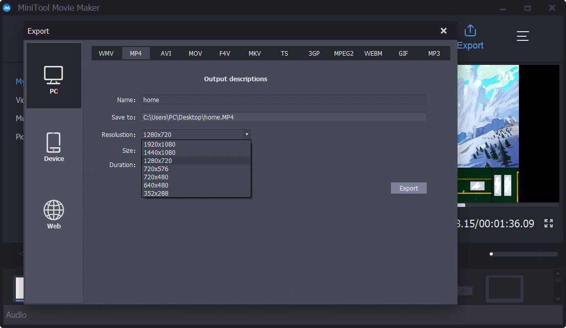 Сохранение видео для мобильных устройств с помощью MiniTool Movie Maker