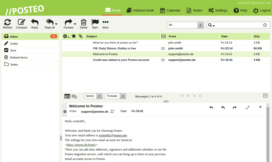 Posteo — безопасный и независимый почтовый сервис с открытым исходным кодом, использующий экологически чистую электроэнергию (Greenpeace Energy). Есть календарь, адресная книга и заметки. Сервис использует комплексное шифрование и двухфакторную аутентификацию. Регистрация и оплата осуществляются анонимно.