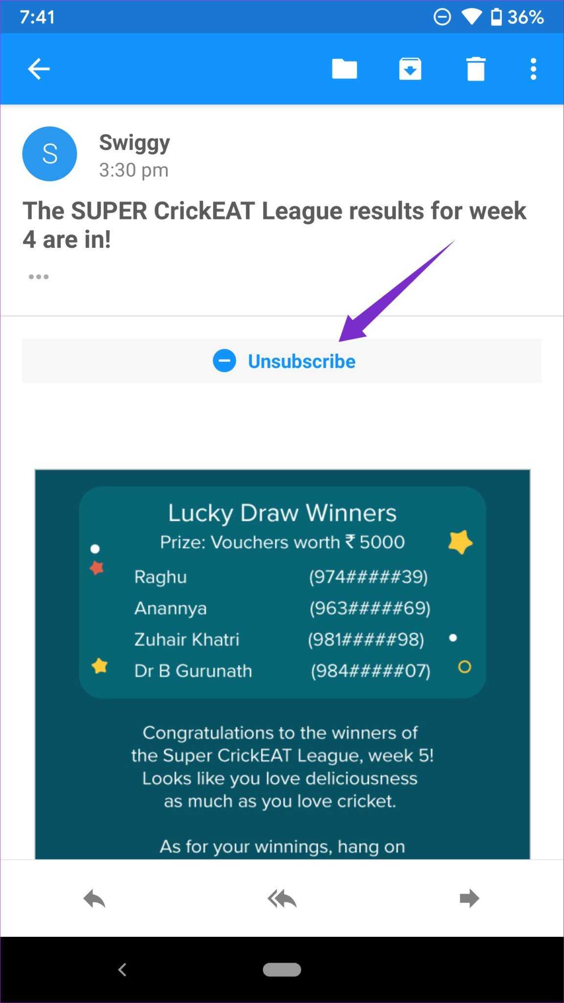 Быстрая отмена подписки является обязательной для любого приложения электронной почты. И это приложение демонстрирует большую кнопку отмены подписки в соответствующей почте, и одним нажатием вы можете избавиться от назойливых рекламных акций и информационных бюллетеней.