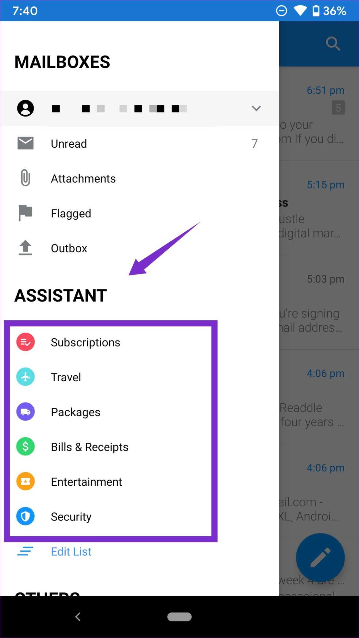Два основных момента приложения — это функция «Помощник» и быстрая кнопка «Отписаться» в приложении. Помощник работает как аккуратный органайзер в приложении. Это будет разумно классифицировать электронную почту, связанную с подпиской, путешествиями, счетами, развлечениями и информацией о пакетах. Он извлечет соответствующую информацию из электронного письма и представит ее в удобной форме.