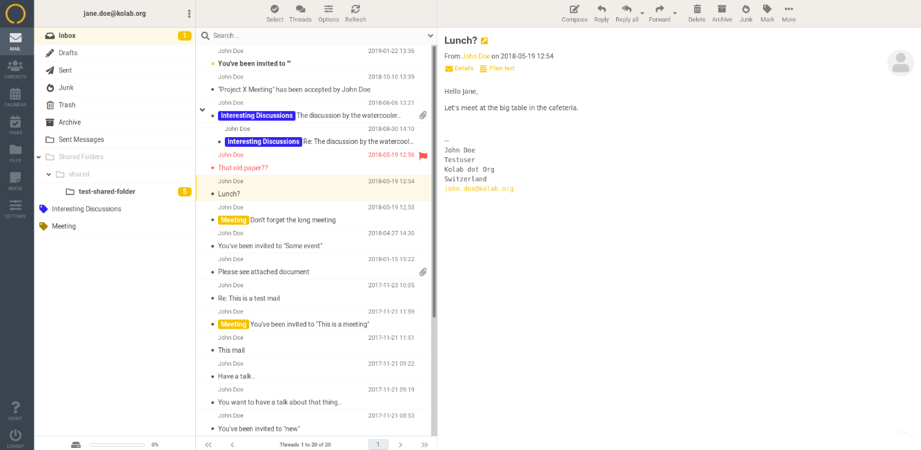 Kolab Now — сервис с полностью открытым исходным кодом, расширенными функциями безопасности и строгой политикой конфиденциальности. Использует сквозное шифрование. Есть календарь, диспетчер задач, хранилище данных, редактор файлов, заметки.