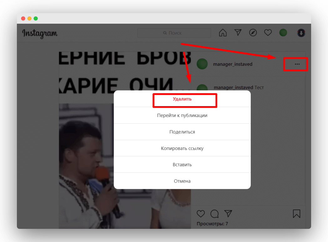 Как удалить видео из Инстаграм-ТВ на компьютере?
