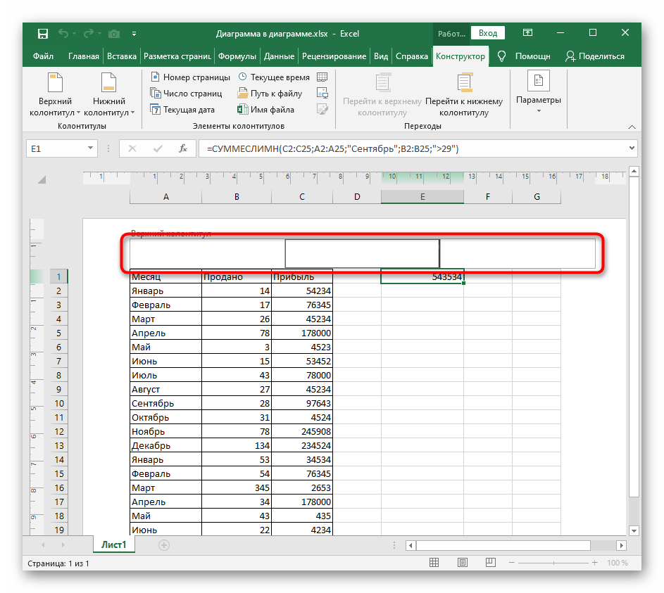 Вы увидите, что в блоке колонтитула появилась соответствующая надпись, а значит, можно кликнуть по пустому месту для применения изменений.