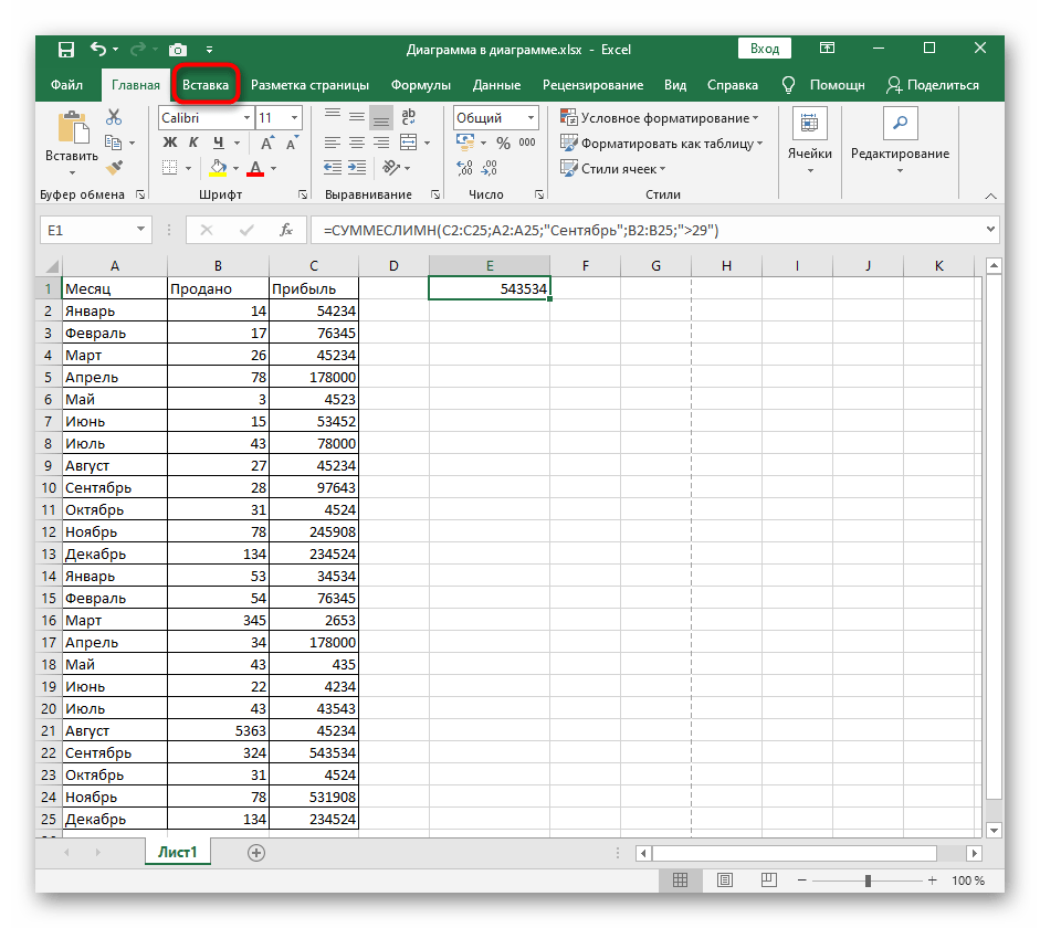 - Переходите в раздел Вставка и ищете одноименную кнопку.