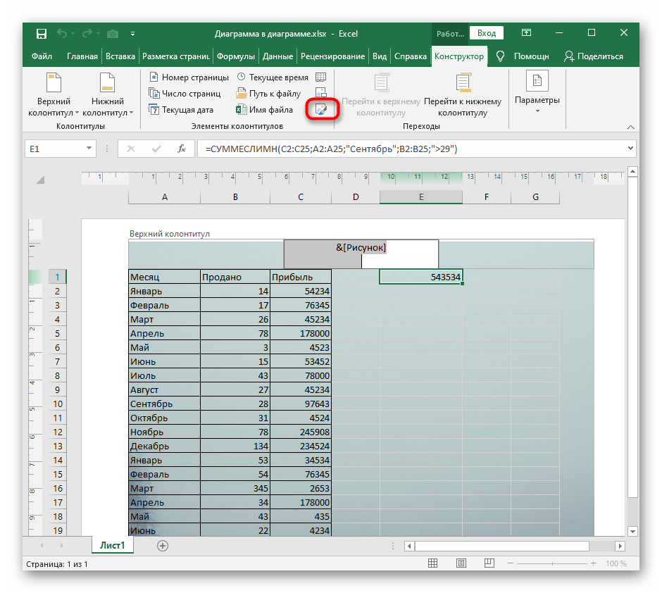 На нашем сайте уже есть статья о том, как добавляются колонтитулы для таблицы в Excel. Это отличный метод настроить формат страницы перед печатью, организовав все необходимые моменты по редактированию в соответствии с ГОСТ или требованиями заказчика проекта. Функциональность инструмента работы с колонтитулами можно использовать для вставки рисунка, который автоматически расположится под текстом, создавая необходимый эффект.