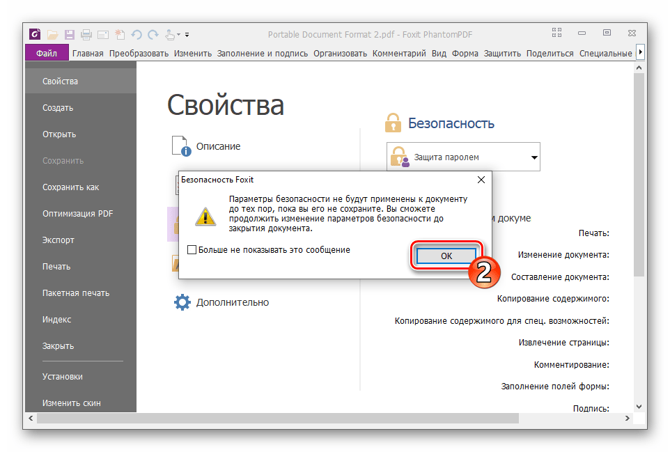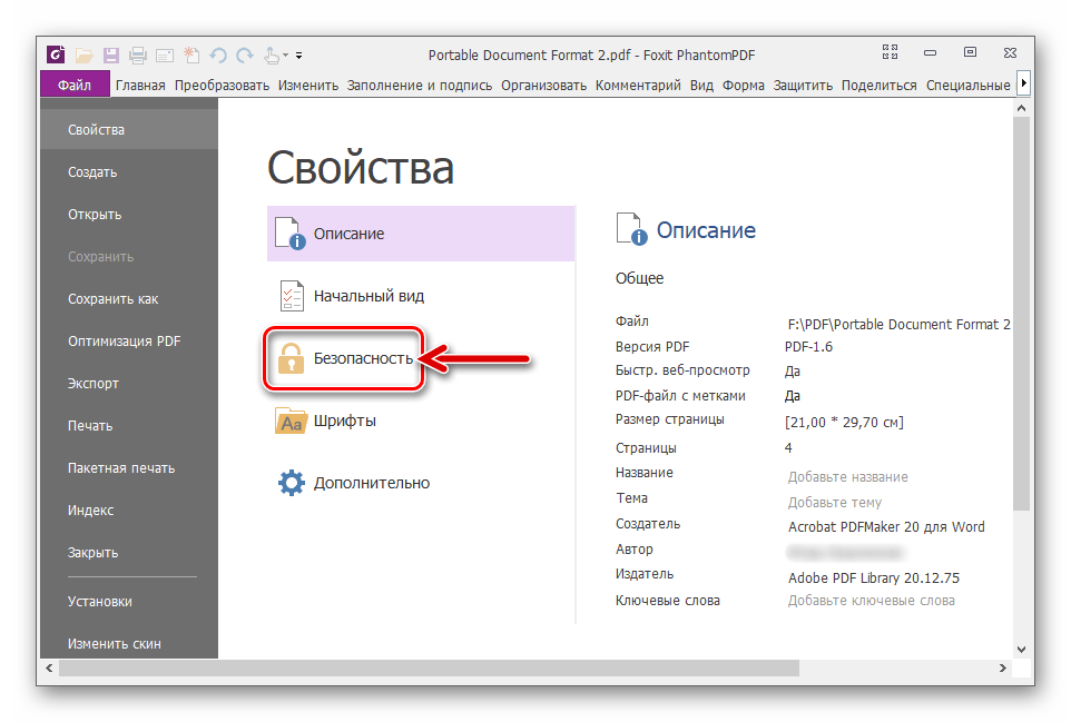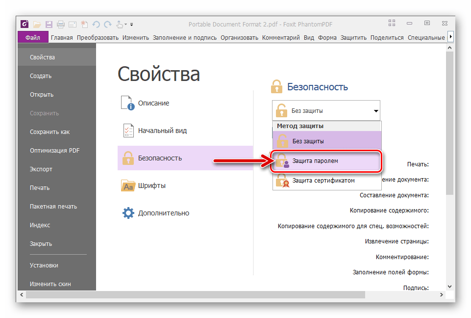 Следующий инструмент, заслуживающий внимания пользователей, которым необходимо проводить более серьёзные, нежели обычный просмотр, операции с файлами PDF, и предоставляющий возможность защитить сохраненные в данном формате документы паролем – это редактор PhantomPDF, разработанный компанией Foxit Software. Обладая копией указанного софта с оплаченной лицензией или используя его в рамках 14-дневного ознакомительного периода, выполнить рассматриваемую операцию несложно.