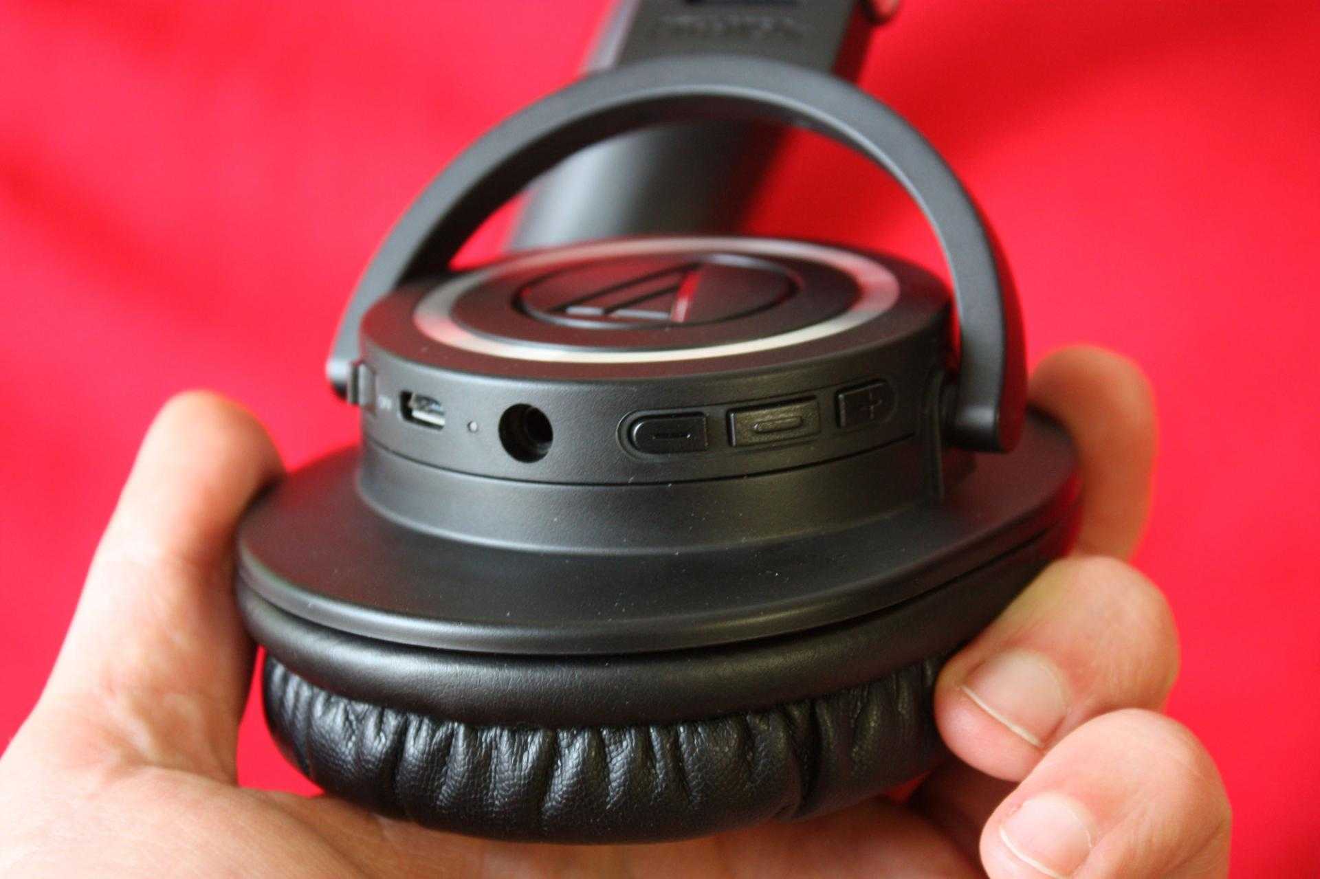 Отметим не совсем типичные элементы управления. Сейчас принято делать кнопку включения, а не триггер, как у сегодняшней модели. Но этот вариант нам понравился больше, также как в принципе все достаточно туго нажимающиеся кнопки. У некоторых других моделей прочих производителей мы часто сталкивались с проблемой случайных нажатий, когда, например, стаскиваешь наушники на шею в магазине около кассы. С M50xBT такие моменты исключены.