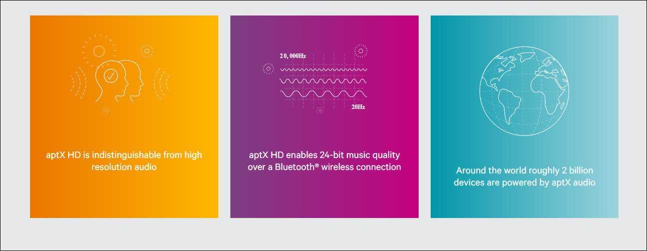 Одним словом, aptX HD передает больше данных, чем aptX, SBC и другие A2DP профили Bluetooth. Это обеспечивает более точное воспроизведение аудиофайлов высокого качества. Однако для того, чтобы максимально использовать эти возможности, нужны и исходные файлы хорошего качества.