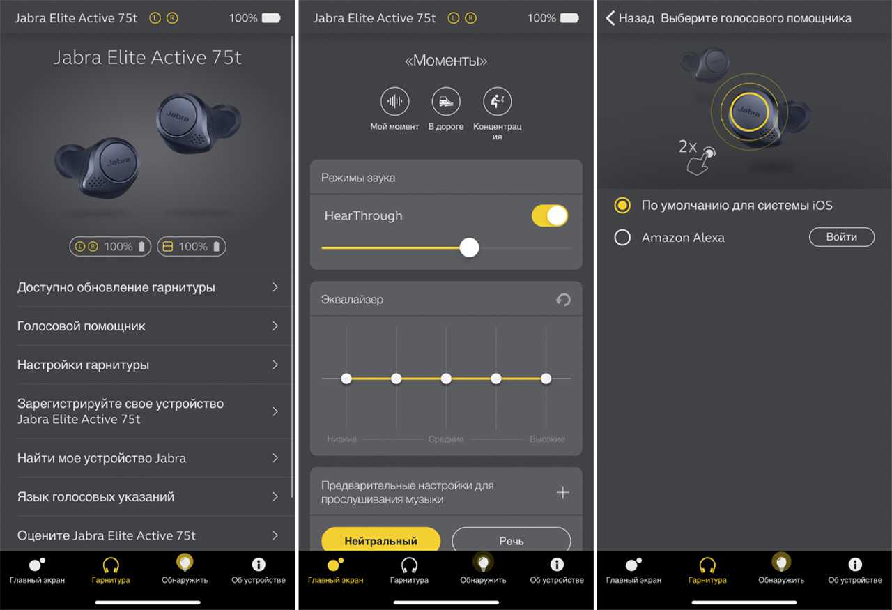 После десятка самых разных наушников и приложений-компаньонов к ним, это приятно удивляет обилием настроек и возможностей, от тонких настроек эквалайзера для голоса собеседника при телефонном разговоре, до выбора голосового помощника.