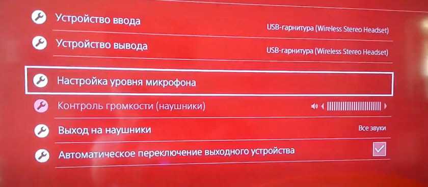 в параграфе «Устройство вывода звука» — подключённая к Дуалшоку гарнитура.
