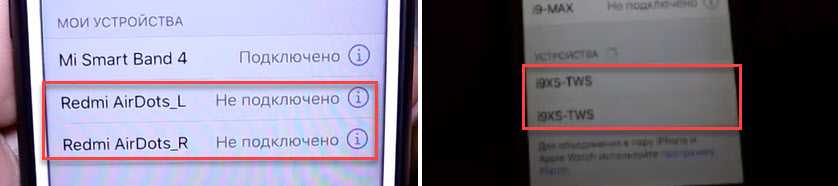 - в списке доступных для подключения устройств будут отображены вкладыши с одинаковым названием, но разными пометками в конце: «L» и «R».